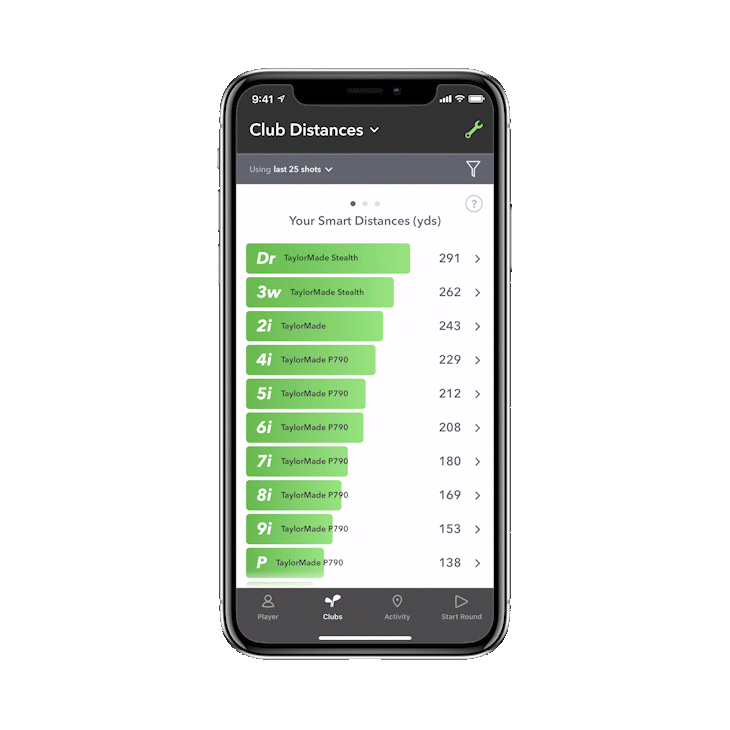 Compare all your clubs with the power of Strokes Gained data. You can easily view your data by selecting "Strokes Gained" from the Club Distances drop down menu.