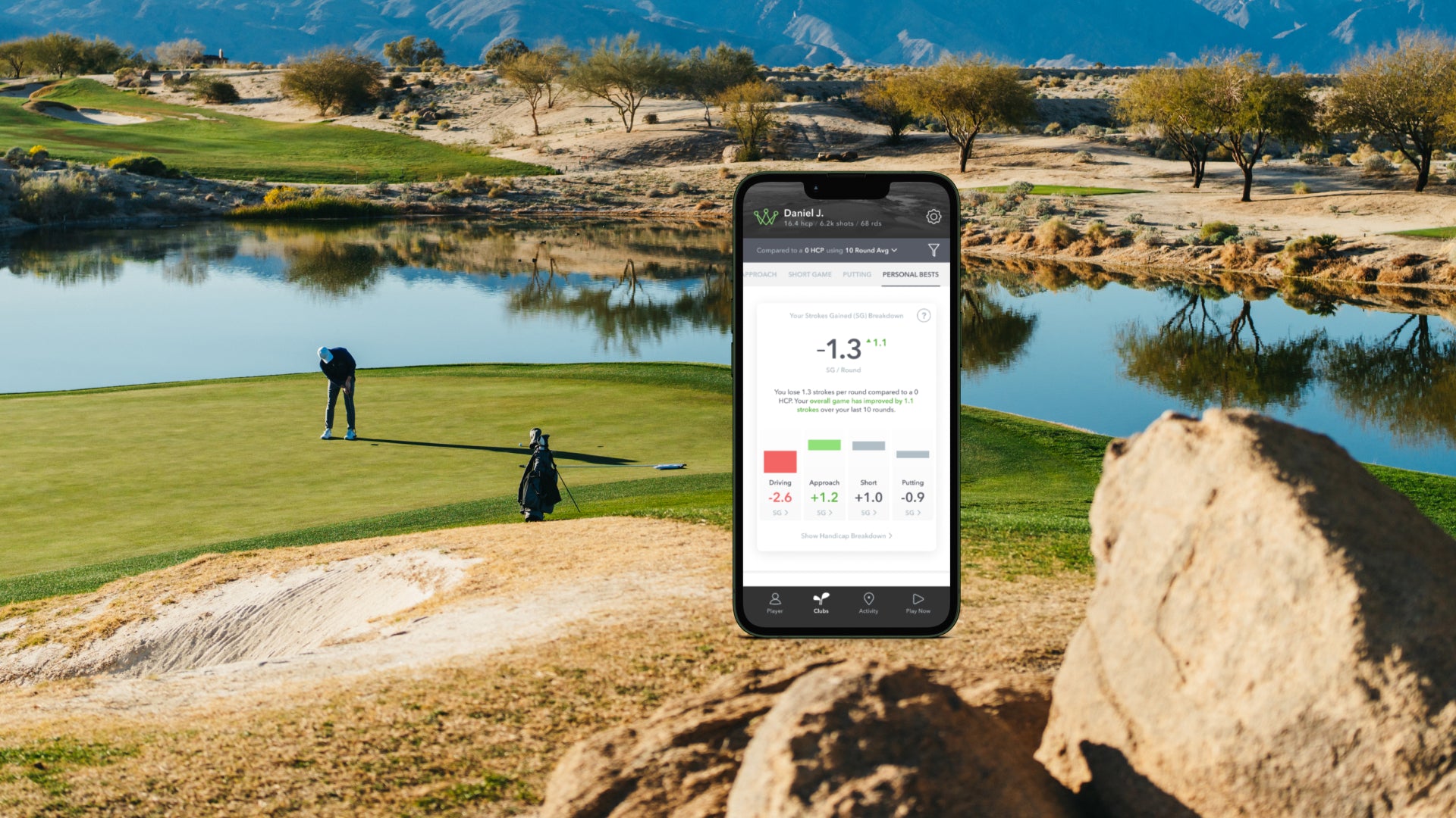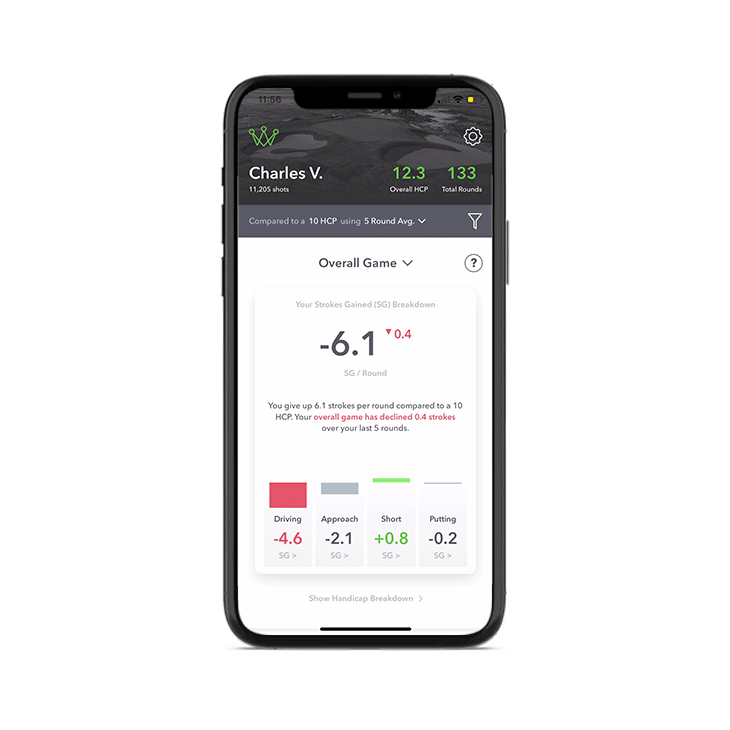 Strokes Gained (SG) is a revolutionary way to analyze the data behind your game. We use our A.I. neural network to accurately compare your current game versus a target handicap of your choosing. Thanks to our vast range of benchmarking options and the largest set of on-course data worldwide, we’re able to provide insights within your player stats for each facet of your game, plus clear ways to improve from world-class coaches.