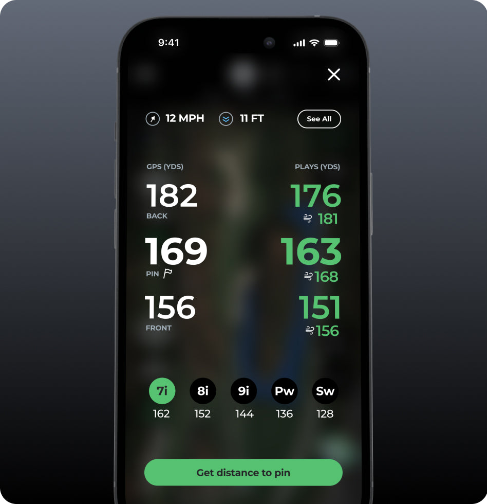 Get precise “Plays Like” distances adjusted in real-time for environmental conditions.