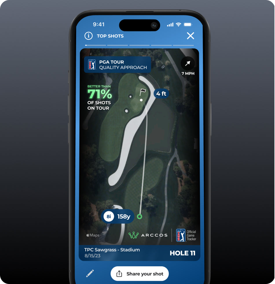 Compare your approach shots to PGA TOUR players. Share it with your friends as proof you were better, for one shot anyway!